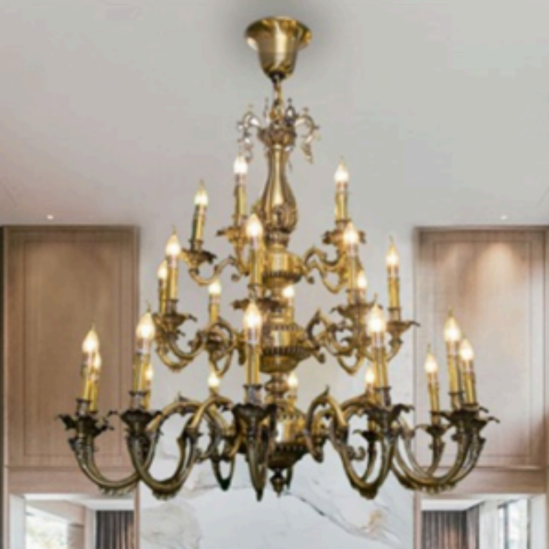 CĐ14 – 1243-25 là mẫu đèn chùm cao cấp mang đậm phong cách hoàng gia cổ điển, được chế tác hoàn toàn từ đồng cao cấp nguyên khối. Thiết kế đồ sộ, bề thế cùng các chi tiết chạm khắc tinh xảo giúp sản phẩm không chỉ là một nguồn sáng mà còn là biểu tượng của sự sang trọng và quyền quý.