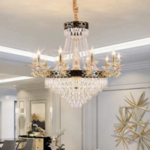 CN1 – 1065/12+6 là mẫu đèn chùm pha lê cao cấp mang phong cách tân cổ điển sang trọng, được thiết kế tinh xảo với nhiều tầng pha lê rủ mềm mại. Mỗi chi tiết đều được chế tác tỉ mỉ để phản chiếu ánh sáng lung linh, tạo nên không gian ấm áp, quý phái và đẳng cấp.