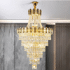 Kích thước ấn tượng Ø800 × H1300mm, thiết kế tầng pha lê xếp lớp lộng lẫy, phù hợp cho phòng khách rộng, sảnh lớn hay không gian cao cấp.