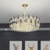 Kích thước D800 × H250 mm vừa vặn, dễ dàng lắp đặt trong nhiều không gian như phòng khách, phòng ăn, sảnh đón tiếp hoặc biệt thự sang trọng. Sử dụng 18 bóng đui E14, ánh sáng được phân bổ đồng đều, giúp không gian thêm phần ấm áp, rực rỡ và cuốn hút.