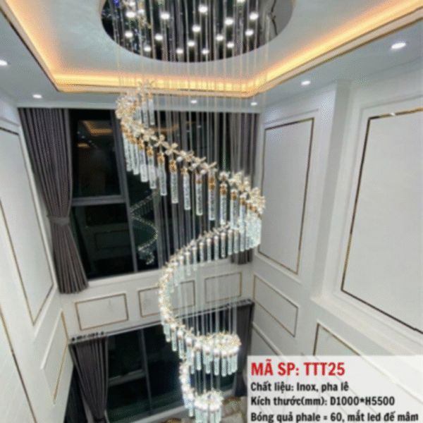ITT25 – Pha Lê 60 Bóng là mẫu đèn trần cao cấp được thiết kế với vẻ đẹp sang trọng và hoành tráng, dành riêng cho các không gian cao trần và quy mô lớn. Sản phẩm sử dụng khung inox sáng bóng kết hợp cùng pha lê cao cấp, mỗi viên pha lê được gia công tỉ mỉ giúp ánh sáng phản chiếu rực rỡ và lung linh.